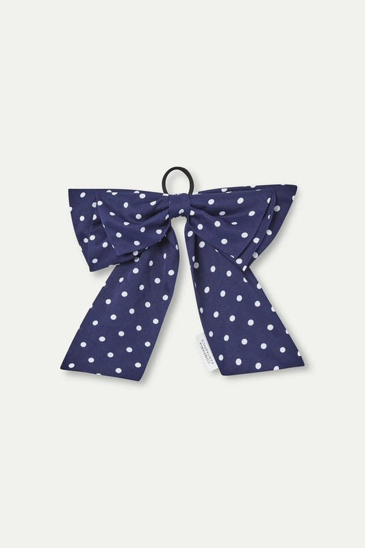 Collare a fiocco blu navy con stampa a punti mini bianco