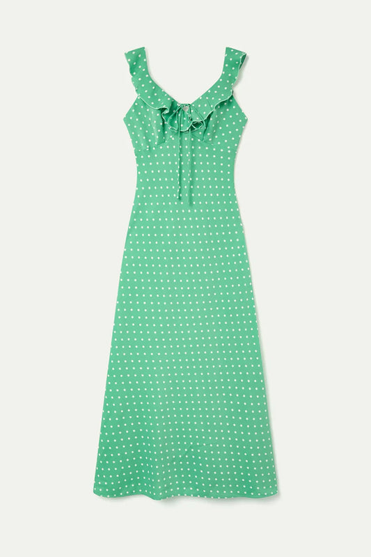 Abito lungo con stampa mini dots verde