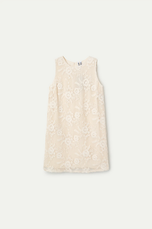 Abito corto 100% cotone all'uncinetto bianco sporco