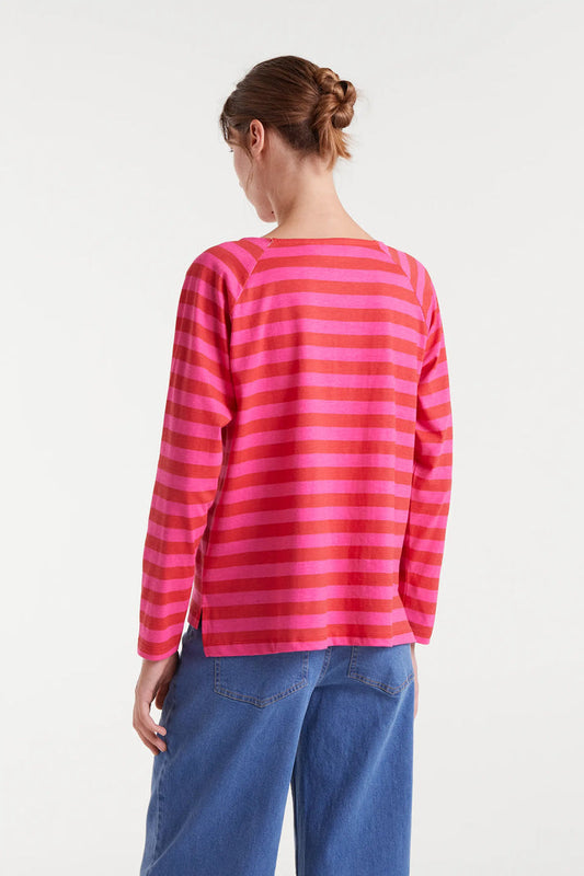 T-shirt 100% cotone con stampa a righe rosa e ricamo luna