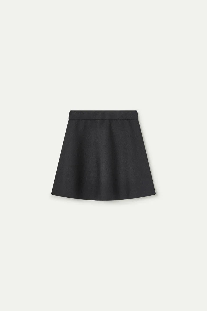 Gonna corta con tessuto a maglia nera. Vita fissa elasticizzata a vita alta. Dettagli rifiniti in rib. Taglio ampio. La modella è alta 177 cm e indossa la taglia S.