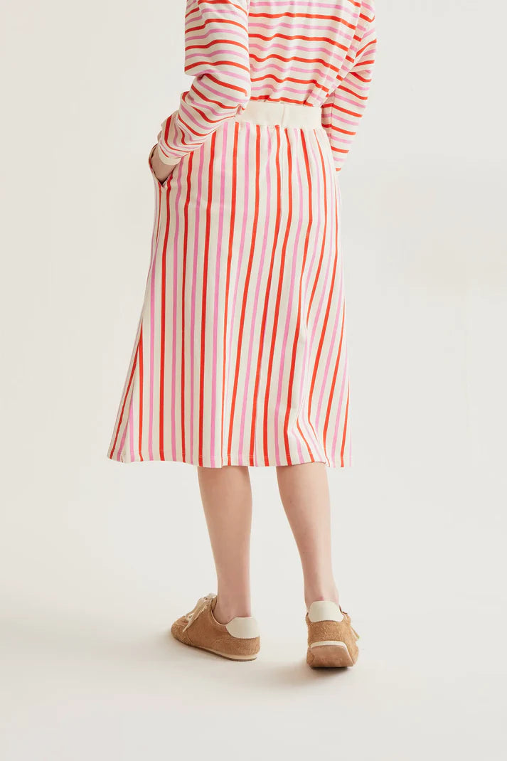 Gonna midi con stampa a righe rosa e rosso