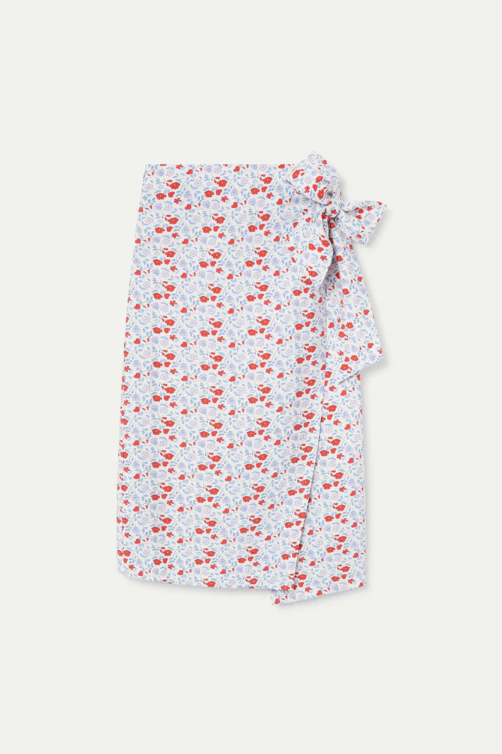 Gonna midi con tessuto crepé leggero. Vita fissa a vita alta. Taglio fluido stile pareco con leggera apertura laterale. Chiusura allacciato. La modella è alta 173 cm e indossa la taglia S.