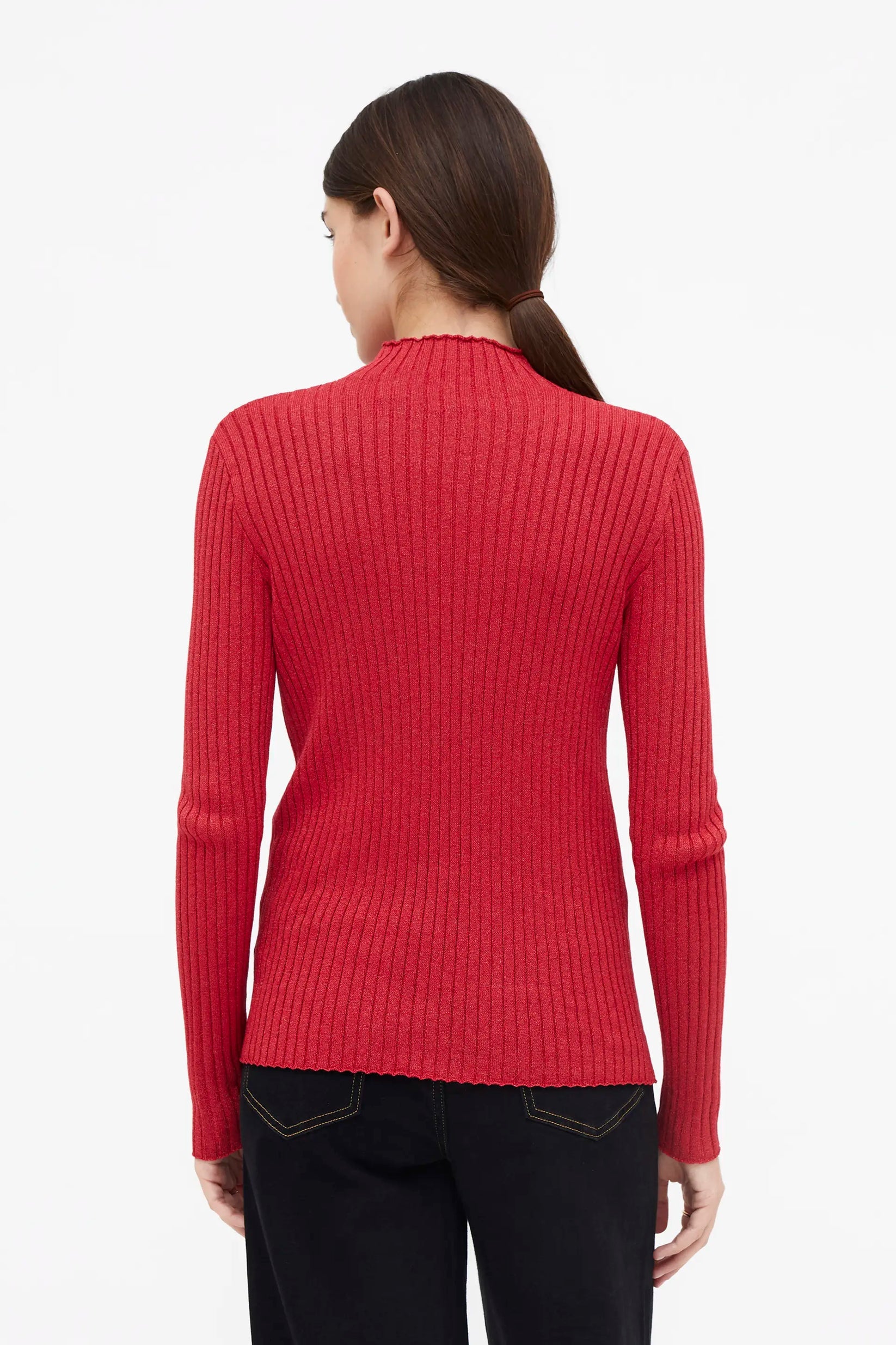 Top in maglia a coste collo perkins rosso. Con collo in perkins, maniche lunghe e dettagli in lurex a coste.